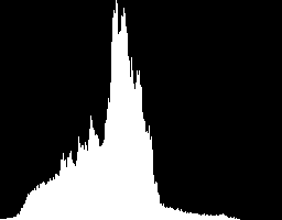 For grayscale images, displays a white histogram on black background.